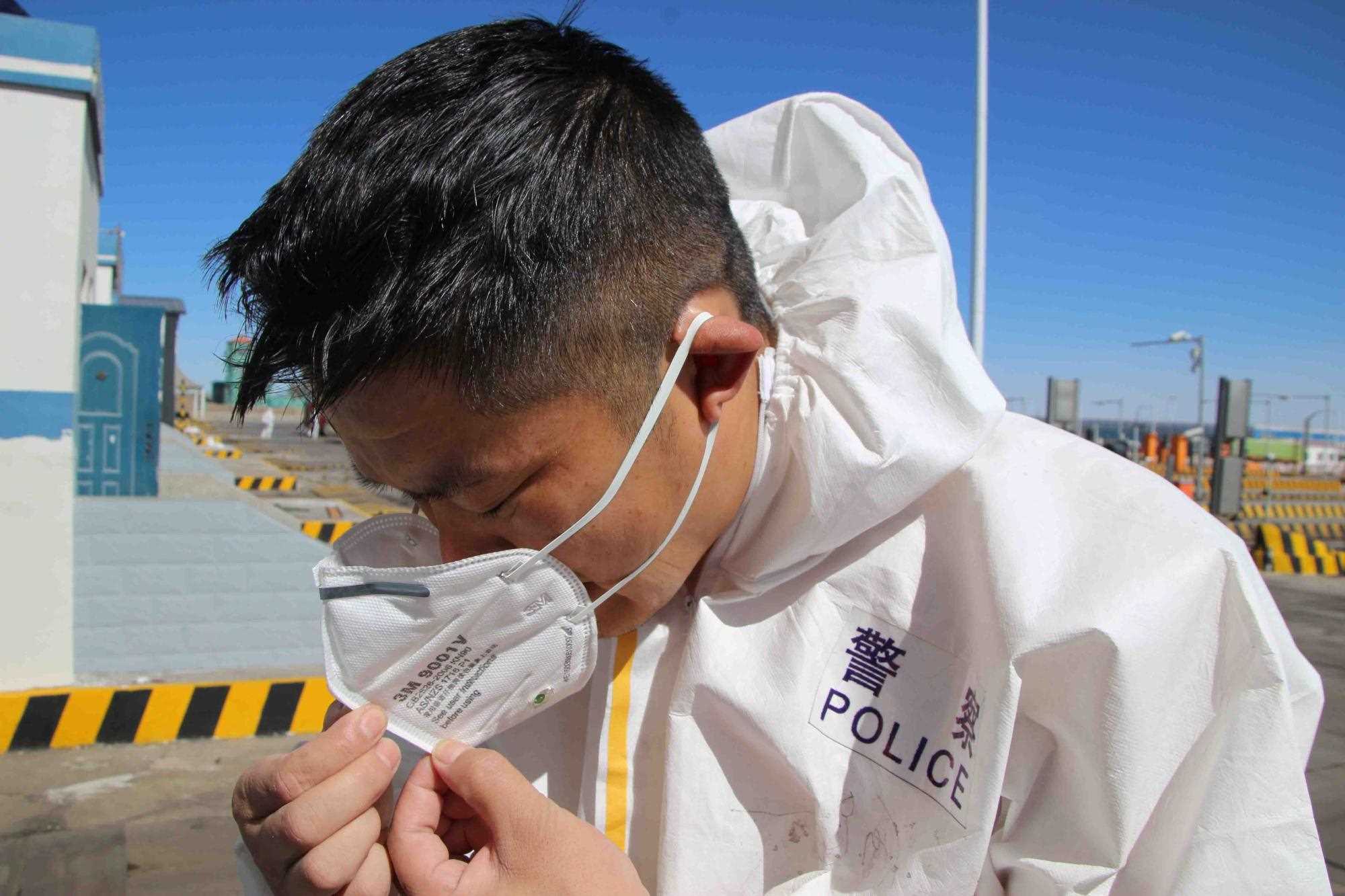 近期策克口岸的溫度持續(xù)增加至30攝氏度以上,而在通行的重型卡車,溫度還要更高,下午15點(diǎn)溫度計(jì)地表溫度測(cè)量最高可達(dá)40攝氏度。這無(wú)疑讓的查驗(yàn)工作更為繁重。更重要的是,由于疫情影響每名民警在查驗(yàn)期間都要穿上防護(hù)服,在高溫下,由于防護(hù)服是密閉的,防護(hù)服里仿佛成了蒸箱,用不了十分鐘,民警就會(huì)汗流浹背,防護(hù)服黏在身上又粘又癢,一班勤務(wù)近2個(gè)小時(shí),必須要等過(guò)了勤務(wù)才能休息,而民警還要完成車體的查驗(yàn)工作,包括工具箱、馬槽等處,絲毫不敢馬虎。
