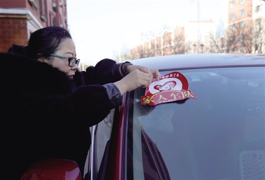 這天是蔡俊玲領(lǐng)到新車標(biāo)的日子,她將車標(biāo)貼在車身的醒目位置。
