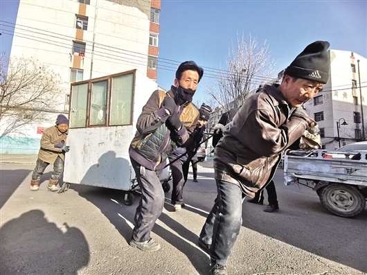 “由于您的車長期占用小區(qū)公共資源,給小區(qū)居民出行帶來不便。請您看到通知后,在3日內自行將您的車挪出小區(qū),如逾期未挪走,我們將您的車做無主僵尸車報相關單位統(tǒng)一處理”。1月15日,黃河西路街道友誼19#四社區(qū)將通知貼在一輛鐵皮車輛醒目的位置,一直無人將車輛挪走。圖為1月18日,友誼19#四社區(qū)的工作人員將該“僵尸車”清走時,車主突然現(xiàn)身。社區(qū)工作人員耐心細致地與該車主交流后,車主表示配合。文/圖 李強