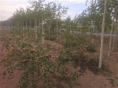 民警趕到現(xiàn)場(chǎng)檢查發(fā)現(xiàn),32棵6年生的河北楊及1棵金葉榆被撞倒,肇事車輛不知所蹤,現(xiàn)場(chǎng)只留下車輛紅色前保險(xiǎn)杠殘片和15米長的車輛輪胎痕跡。
