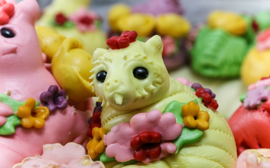 呼和浩特市非遺項(xiàng)目面塑傳承人孟素英的面塑作品(圖片均由土左旗融媒體中心提供)