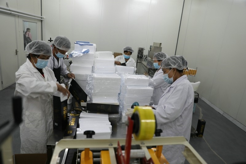 當(dāng)日上午,媒體團(tuán)成員進(jìn)入加工車間實(shí)地了解熏雞、熏蛋、熏肉等特色產(chǎn)品生產(chǎn)加工過程。據(jù)了解,卓資縣的熏雞每年銷量約為400萬只,產(chǎn)值2個億,帶動了當(dāng)?shù)厝罕娒撠氈赂唬钦嬲母幻駨?qiáng)縣產(chǎn)業(yè)。目前,卓資熏雞在繼承傳統(tǒng)工藝的基礎(chǔ)上,引進(jìn)鎖鮮包裝,使熏雞保鮮期由原來的7天增加到15天,并進(jìn)入電商平臺面向全國銷售。