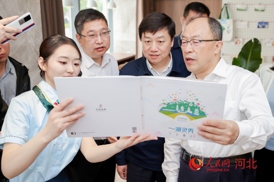 與會領(lǐng)導(dǎo)在欣賞郵票冊子。 人民網(wǎng) 周博攝