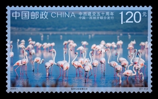為紀(jì)念中西建交50周年,中國郵政定于2023年5月10日發(fā)行《中西建交五十周年》(與西班牙聯(lián)合發(fā)行)紀(jì)念郵票1套2枚,郵票圖案以西班牙的富恩特皮埃德拉湖和中國的衡水湖為題材,展現(xiàn)出兩國湖泊的旖旎風(fēng)光和自然生態(tài)特征,畫面構(gòu)圖簡約明快、表現(xiàn)意境清朗優(yōu)美。據(jù)了解,這是衡水湖首次作為“國家名片”出現(xiàn)在中外聯(lián)合發(fā)行的郵票當(dāng)中。