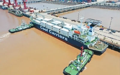 去年以來(lái),浙江省玉環(huán)市持續(xù)加強(qiáng)對(duì)港口企業(yè)的引導(dǎo)力度,拓展大麥嶼港與東南亞國(guó)家、RCEP國(guó)家的合作。圖為一艘滿載6245噸新季獼猴桃的新西蘭貨輪停泊在大麥嶼港集裝箱碼頭,該航線是大麥嶼港于去年成功開通的RCEP國(guó)家水果進(jìn)口航線,實(shí)現(xiàn)了入境水果業(yè)務(wù)零的突破。段俊利攝(人民視覺(jué))
