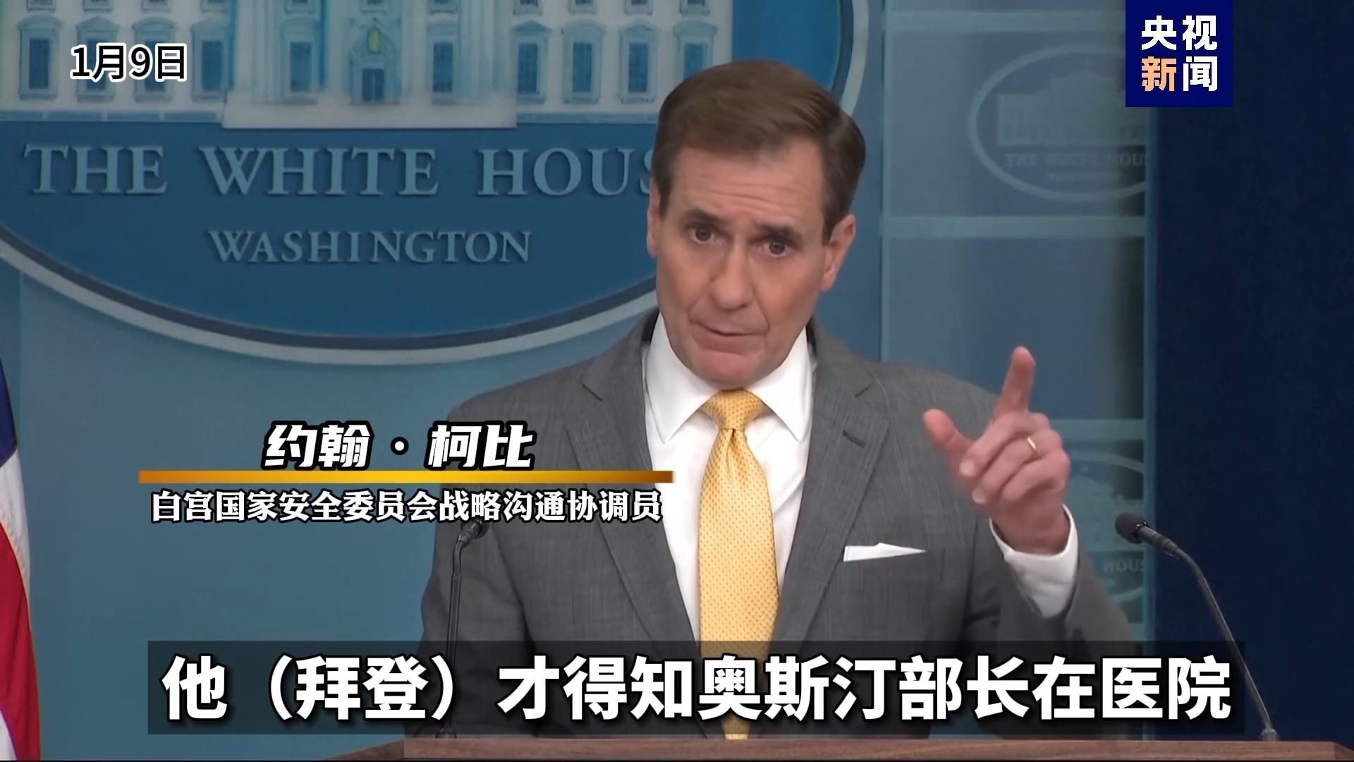 白宮國家安全委員會(huì)戰(zhàn)略溝通協(xié)調(diào)員 約翰·柯比:直到上周五(1月5日),他(拜登)才得知奧斯汀部長在醫(yī)院。直到今天(1月9日)早上,他才被告知住院的原因是前列腺癌。