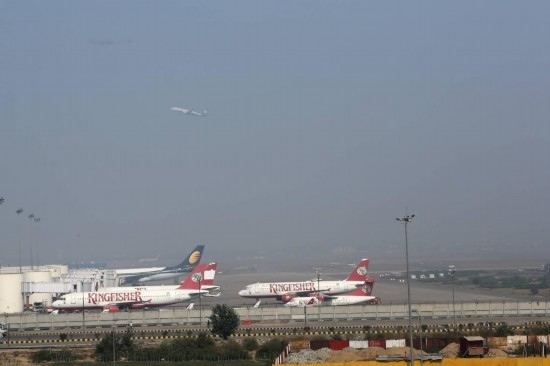 2013年2月1日,在印度首都新德里,飛機??吭谟⒌侠じ实貒H機場。新華社記者李毅剛攝