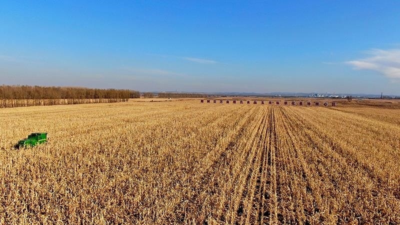 △2022年10月28日,在四平市梨樹縣國家百萬畝綠色食品原料(玉米)標(biāo)準(zhǔn)化生產(chǎn)基地核心示范區(qū),農(nóng)民駕駛農(nóng)機進行秋收作業(yè)。