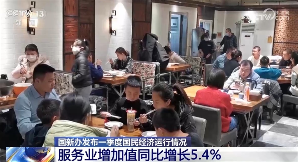 服務(wù)業(yè)增速明顯回升。一季度,服務(wù)業(yè)增加值同比增長5.4%,高于上年四季度3.1個百分點(diǎn)。前期受疫情影響較大的接觸型、聚集型服務(wù)業(yè)回升尤為突出。