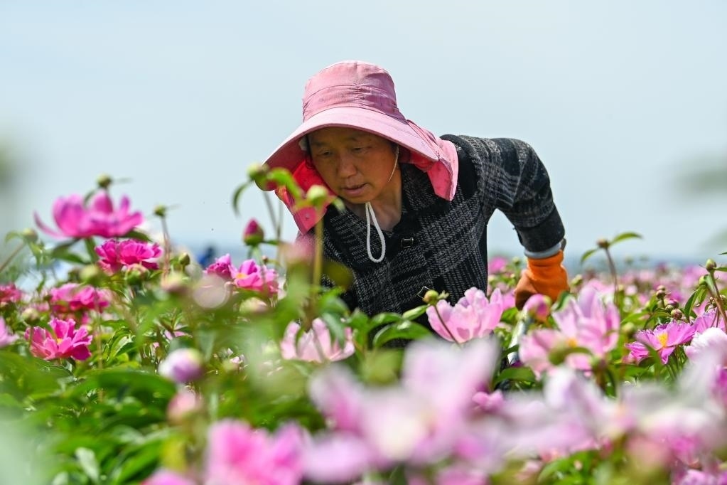“花經(jīng)濟(jì)”持續(xù)升溫下,越來越多農(nóng)民走出家門,成為產(chǎn)業(yè)工人。入夏,走進(jìn)伊寧縣天山花海景區(qū),連片芍藥、亞麻花爭(zhēng)相盛開,工人正在田間加緊除草、養(yǎng)護(hù)。