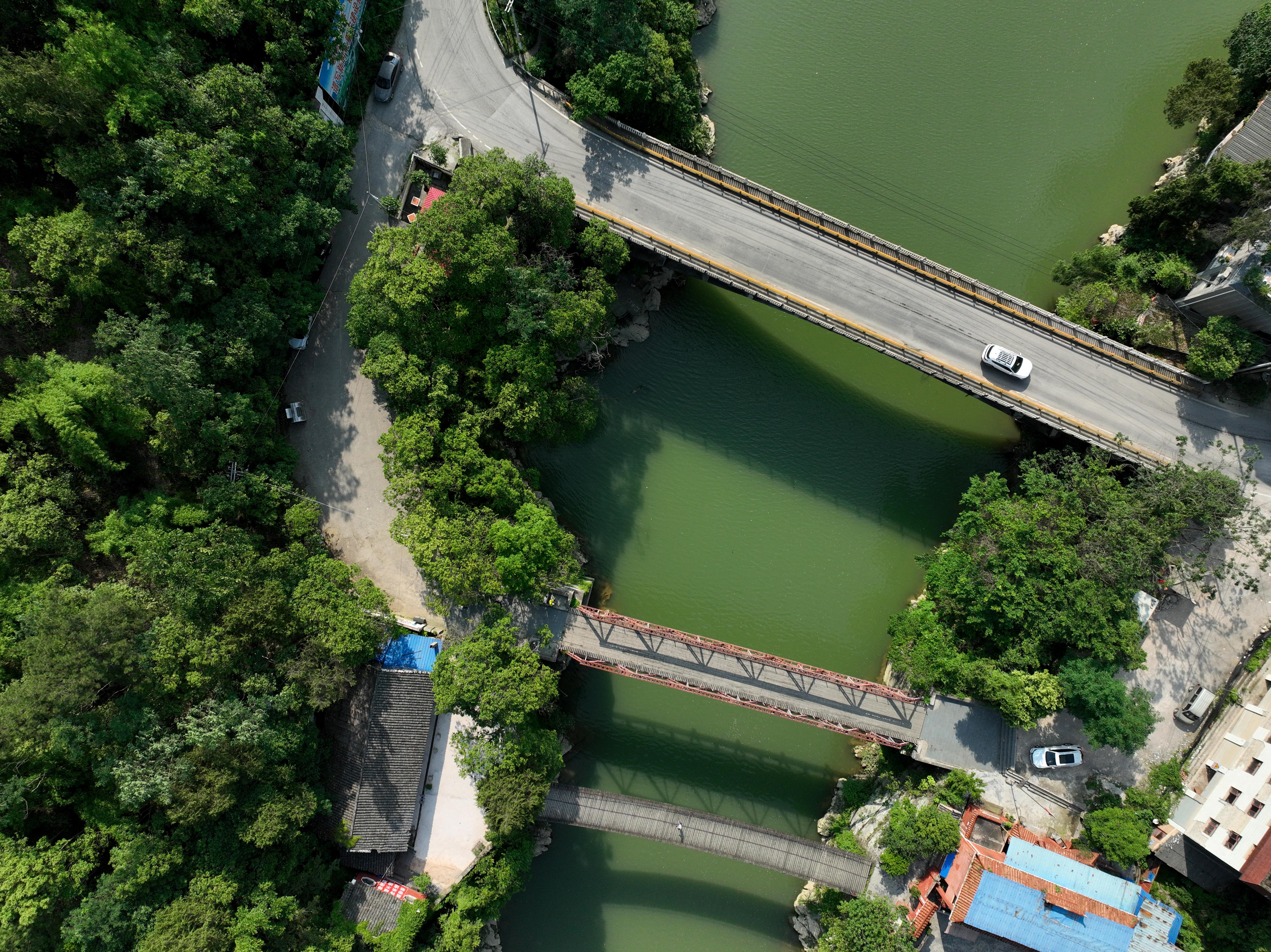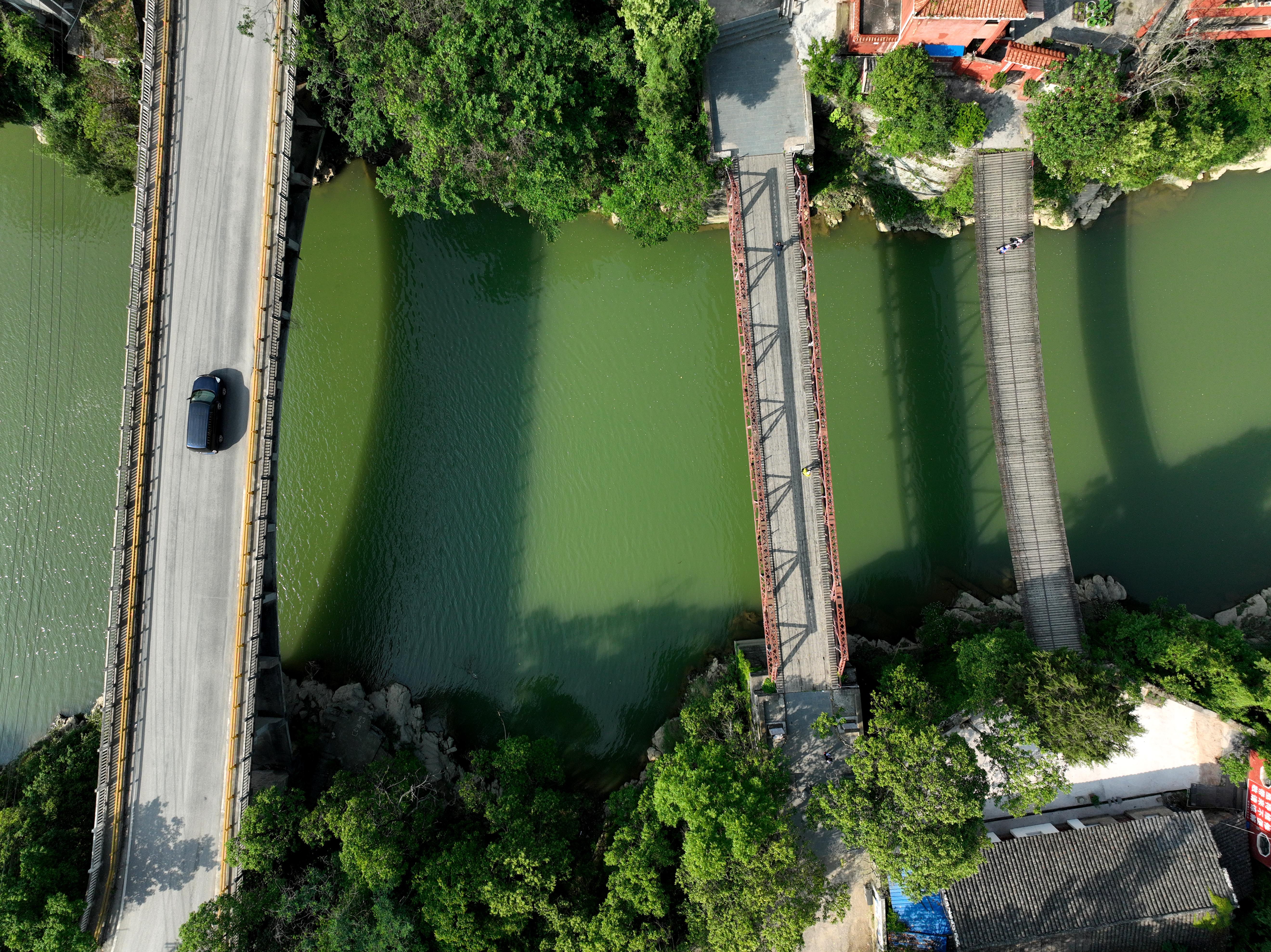 2023年5月27日拍攝的貴州省黃平縣重安鎮(zhèn)“三朝橋”之石墩鋼架橋。 (寧堅 趙軍)