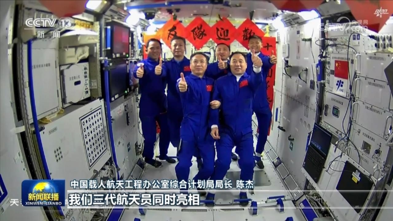 神舟十五號三名航天員在空間站實(shí)時(shí)觀看了神舟十六號發(fā)射的全過程。