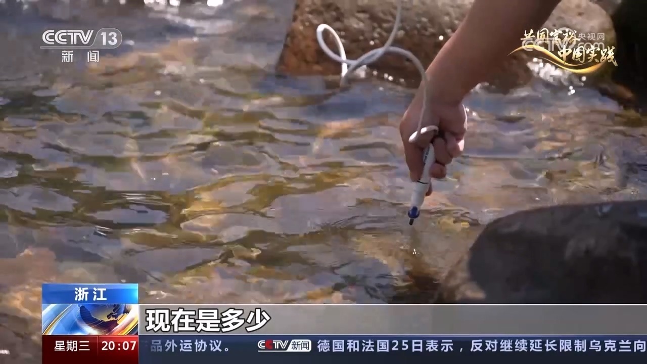 工作人員正在檢測溪水水質(zhì),為GEP中“水質(zhì)凈化”指標(biāo)采集數(shù)據(jù)。