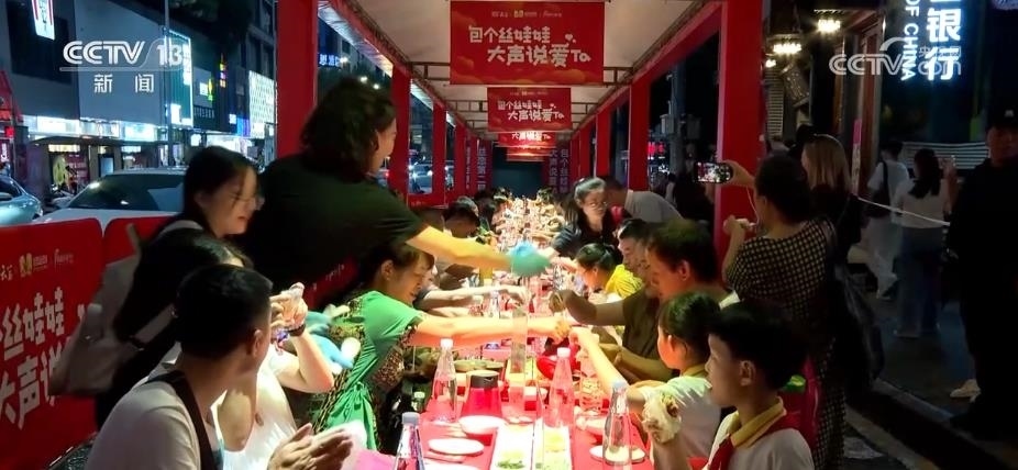 這個暑期,貴州貴陽天氣涼爽,來這里旅游還可以感受一下貴陽云巖區(qū)的長街宴。近60米的長街宴一字排開,游客圍坐在長桌邊,品嘗當(dāng)?shù)氐姆沁z美食“絲娃娃”。這是一種貴陽傳統(tǒng)小吃,別名素春卷,已有百年歷史。