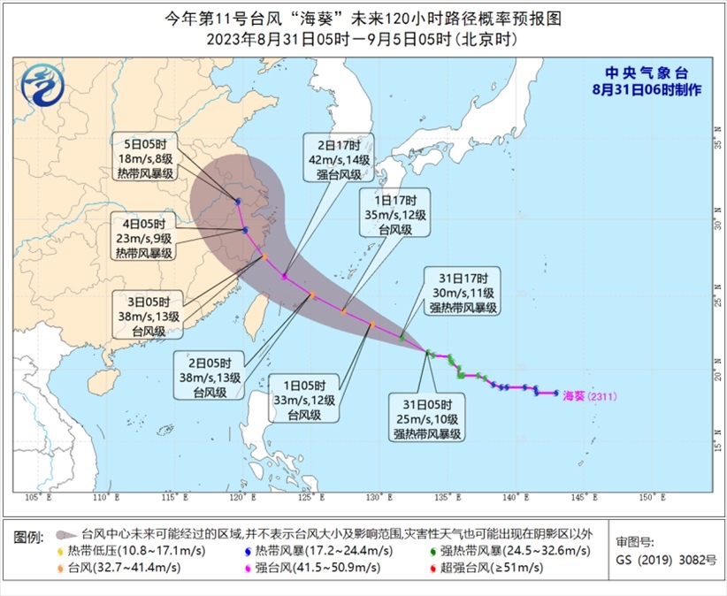 受“蘇拉”影響,今天白天到夜間,巴士海峽、臺(tái)灣海峽、南海東北部、福建沿海、廣東中東部沿海、臺(tái)灣島南部沿海、東沙群島將有6~8級(jí)、陣風(fēng)9~10級(jí)的大風(fēng),其中巴士海峽偏西海域、南海東北部海域、東沙群島的風(fēng)力有9~11級(jí),部分海域風(fēng)力可達(dá)12~13級(jí),“蘇拉”中心經(jīng)過(guò)的附近海面風(fēng)力有14~17級(jí)、陣風(fēng)17級(jí)以上。