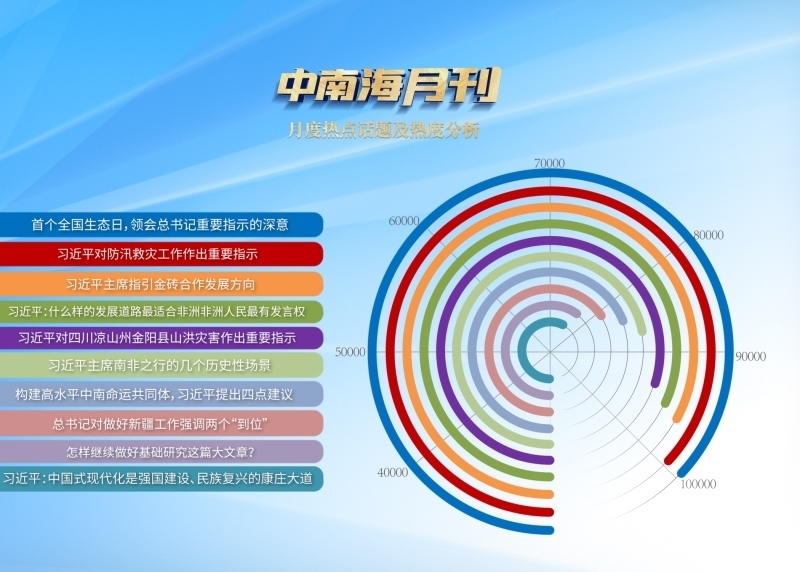 中國式現(xiàn)代化是強國建設(shè)、民族復(fù)興的康莊大道,康莊大道并不等于一馬平川。就像習(xí)近平總書記所強調(diào)的,“要把中國式現(xiàn)代化5個方面的中國特色變?yōu)槌晒嵺`,把鮮明特色變成獨特優(yōu)勢,需要付出艱巨努力”。央視網(wǎng)“智聞”系統(tǒng)提取分析8月全網(wǎng)時政新聞熱點顯示,總書記對推進中國式現(xiàn)代化的最新部署吸引全網(wǎng)目光。