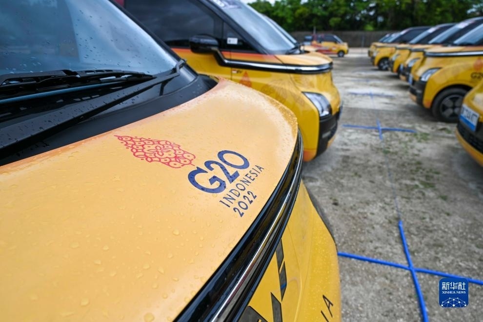 這是2022年11月12日在印度尼西亞巴厘島二十國集團(G20)領(lǐng)導人第十七次峰會主會場拍攝的五菱新能源車。新華社記者 徐欽 攝