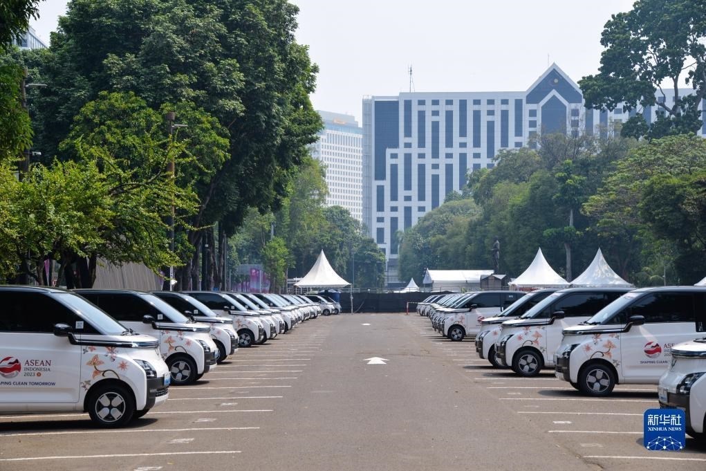 這是9月6日在印度尼西亞雅加達第43屆東盟峰會會場外拍攝的五菱新能源車Air ev。新華社記者 徐欽 攝