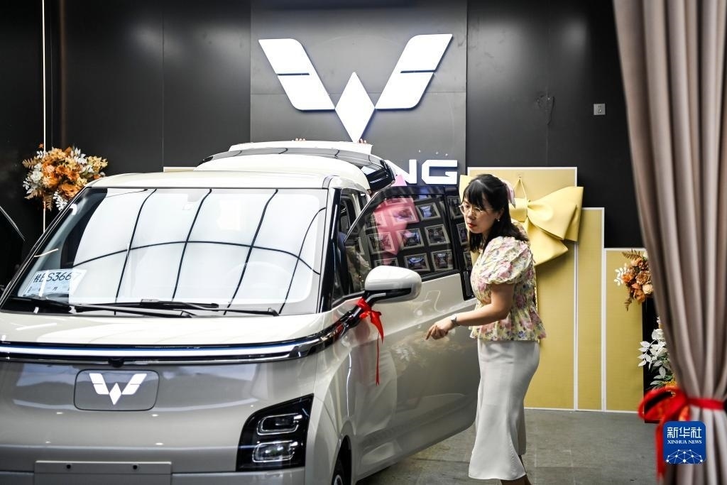 在廣西柳州市一家新能源汽車銷售店內(nèi),一位車主提驗新車(7月20日攝)。新華社記者 曹祎銘 攝
