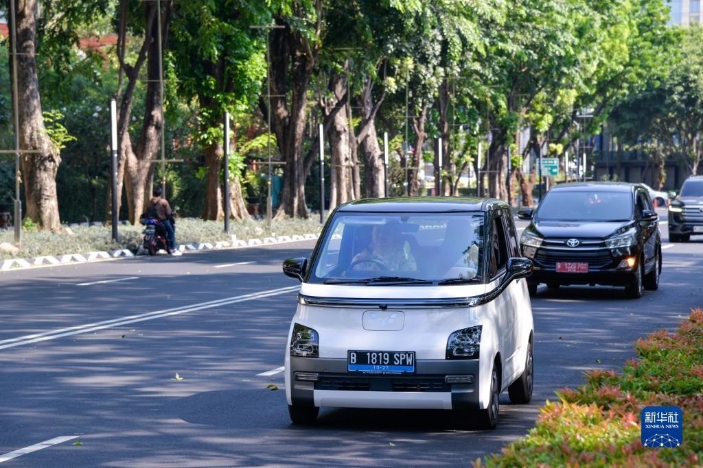 9月29日,在印度尼西亞雅加達街頭,一位車主駕駛著自己的五菱新能源車Air ev。新華社記者 徐欽 攝