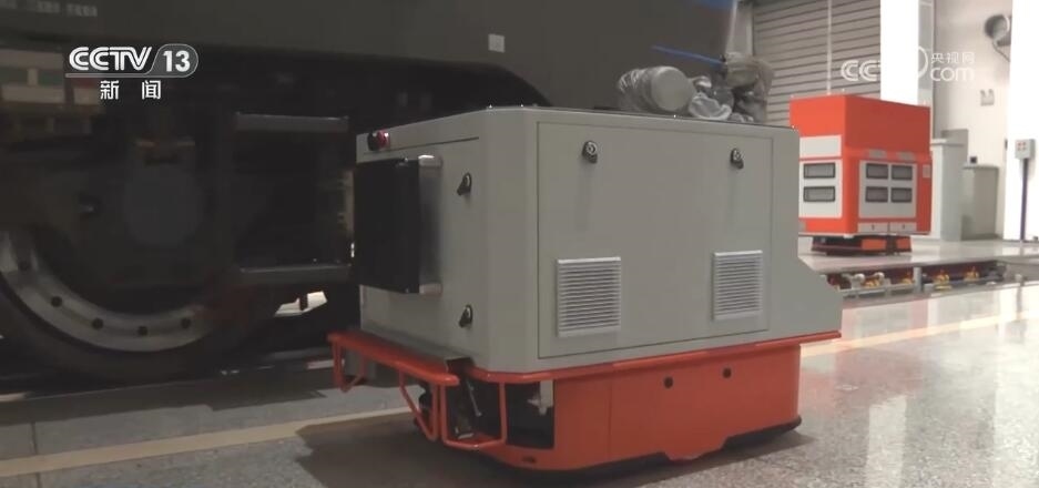 總臺記者 薛東海:列車途徑沿線隧道眾多,從而行駛過程當(dāng)中會積攢大量煤灰、粉塵,影響列車的安全。也意味著當(dāng)列車行駛到一段距離之后,就要來到庫區(qū)進(jìn)行維修和除塵工作。曾經(jīng)這項(xiàng)主要是依賴于人工,需要四名工人來到溝底進(jìn)行吹除作業(yè)。到了今年,這樣的工作被我旁邊的這個“小家伙”智能機(jī)器人取代了。
