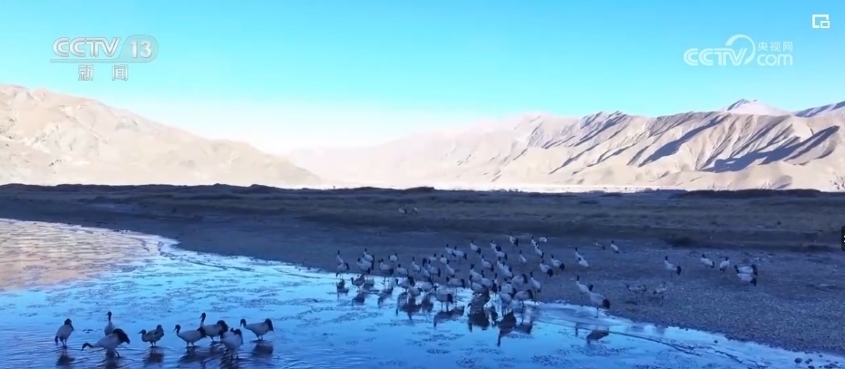 西藏的越冬水鳥主要有黑頸鶴、斑頭雁、赤麻鴨等。監(jiān)測(cè)隊(duì)設(shè)立了505個(gè)觀測(cè)點(diǎn),共記錄調(diào)查軌跡數(shù)407條,觀測(cè)到水鳥45種。其中,包括兩種國(guó)家一級(jí)保護(hù)動(dòng)物,分別是黑頸鶴和白尾海雕。7種國(guó)家二級(jí)保護(hù)動(dòng)物,分別是灰鶴、鴛鴦、白額雁、斑頭秋沙鴨、黑頸鸊鷉、角鸊鷉、花臉鴨。還有重要生態(tài)、科學(xué)、社會(huì)價(jià)值的陸生野生動(dòng)物36種。