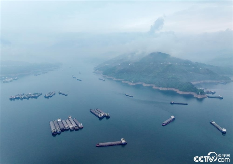 2024年4月10日,湖北宜昌,一場(chǎng)春雨過后,秭歸縣峽江兩岸煙雨朦朧,船行其間,宛如一幅水墨畫卷。