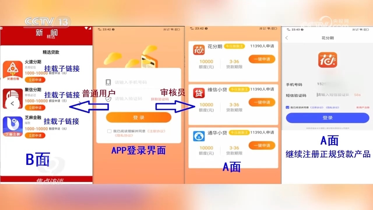 安徽省蕪湖市公安局經(jīng)開區(qū)分局偵查打擊部警務(wù)技術(shù)二級主管高陽:“提供審核的都是正規(guī)的貸款產(chǎn)品,點(diǎn)擊以后一步一步看起來都很正規(guī),這樣審核員就會通過,覺得這個APP是正常的,可以在官方應(yīng)用商城上架。但是普通用戶登錄以后,就會下載新的APP,新的APP都是詐騙APP?!?/p>