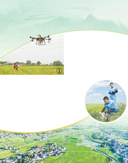圖①:四川省綿陽市安州區(qū)河清鎮(zhèn)同盛村雜交水稻制種基地,農技人員操作植保無人機對水稻授粉。張祖強攝(人民視覺) 圖②:中化環(huán)境吉林分公司職員在大安市龍沼鎮(zhèn)龍海灌片03片區(qū)的水稻田內取測水樣。新華社記者 李 賀攝 圖③:江西省萍鄉(xiāng)市上栗縣桐木鎮(zhèn)湖塘村鄉(xiāng)村風光。李桂東攝(人民視覺)