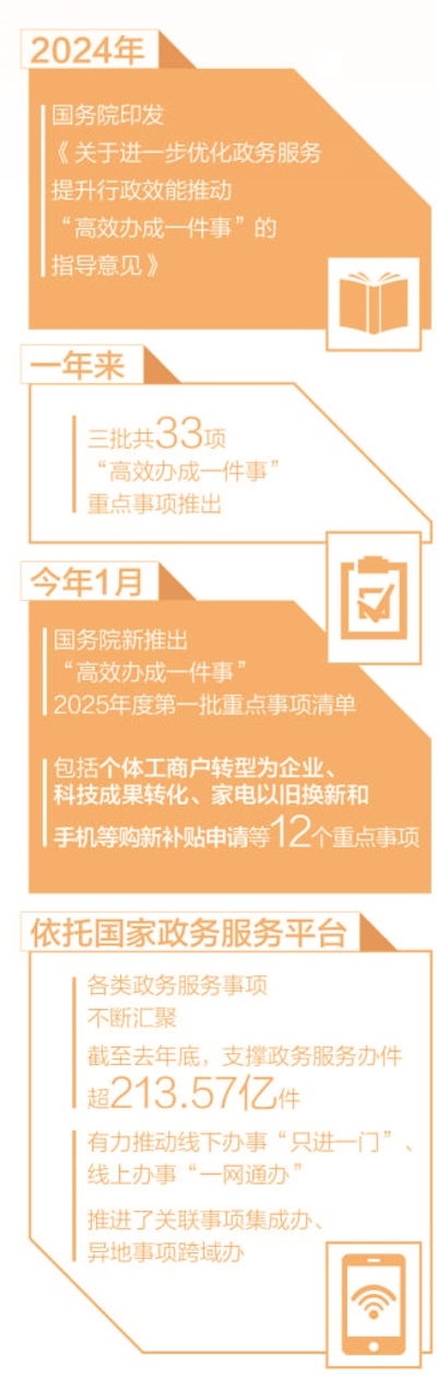 政府工作報(bào)告提出,“健全‘高效辦成一件事’重點(diǎn)事項(xiàng)清單管理和常態(tài)化推進(jìn)機(jī)制,完善覆蓋全國的一體化在線政務(wù)服務(wù)平臺?!?/p>