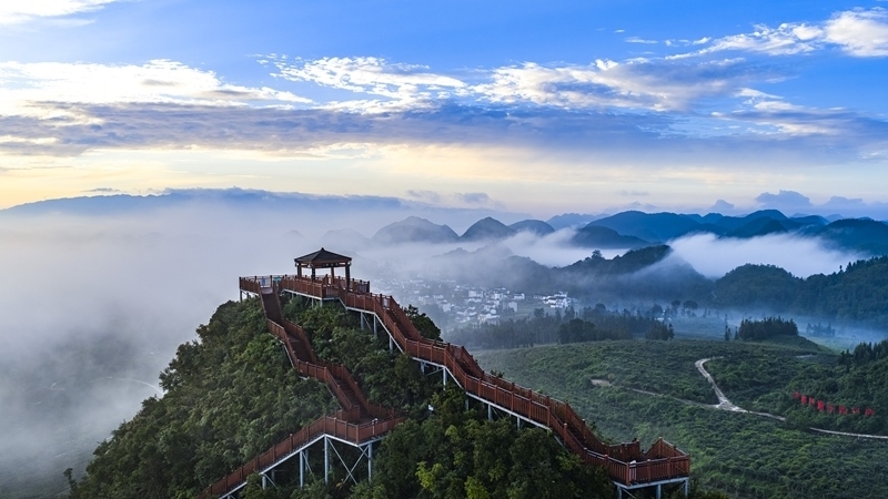 8月25日在云南西疇國家石漠公園拍攝的初秋晨景(無人機照片) 。