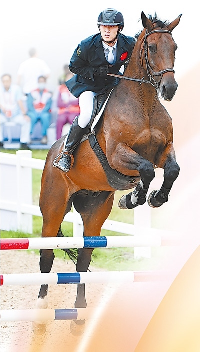 9月21日,湖北隊(duì)選手陳柏良在第十五屆全國運(yùn)動(dòng)會現(xiàn)代五項(xiàng)馬術(shù)比賽中。