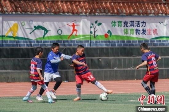 3月28日,西寧市城北區(qū)在中國青少年校園足球特色學(xué)校大堡子小學(xué)開展學(xué)校特色項(xiàng)目展示交流活動(dòng)?;顒?dòng)中,學(xué)生們展示足球特色大課間、足球聯(lián)賽、日常訓(xùn)練等內(nèi)容,并結(jié)合校園足球文化,創(chuàng)編合唱、舞蹈、皮影戲等形式多樣的衍生節(jié)目。