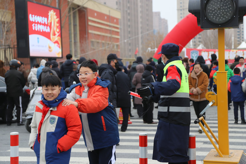當(dāng)日清晨7時(shí)許,校園門前已秩序井然。在赤峰市公安交管部門統(tǒng)一指揮調(diào)度下,專業(yè)護(hù)學(xué)安保力量提前到崗,在校園出入口、人行橫道及車流集中路段開展值守。執(zhí)勤人員與交警密切配合,規(guī)范開展交通疏導(dǎo),引導(dǎo)接送車輛即停即走,及時(shí)勸導(dǎo)交通違法行為,護(hù)送學(xué)生安全通過(guò)道路,有效維護(hù)上下學(xué)高峰時(shí)段交通秩序,成為校園周邊一道亮眼的“平安風(fēng)景線”。