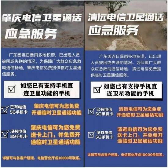 “如您有支持直連衛(wèi)星功能的手機,電信可免費為您開通臨時衛(wèi)星通話功能?!边B日來,這則救災應急通信的消息在受災地區(qū)傳播,為迅速解決受災地區(qū)通信困難問題,廣東電信肇慶、清遠、韶關等地分公司對外緊急推出免費衛(wèi)星通信保障服務,凡是具備衛(wèi)星功能的手機,都可以免費開通衛(wèi)星功能,撥打衛(wèi)星電話。地面通信中斷期間,韶關江灣鎮(zhèn)朱鎮(zhèn)長第一時間通過天通衛(wèi)星電話撥通了市應急廳電話,與外界取得聯(lián)系,通報災情。據(jù)統(tǒng)計,20日-23日期間,受災區(qū)域衛(wèi)星通話用戶數(shù)達1641戶,通話次數(shù)超4305次,天通衛(wèi)星電話發(fā)揮了應急通信的保底作用。