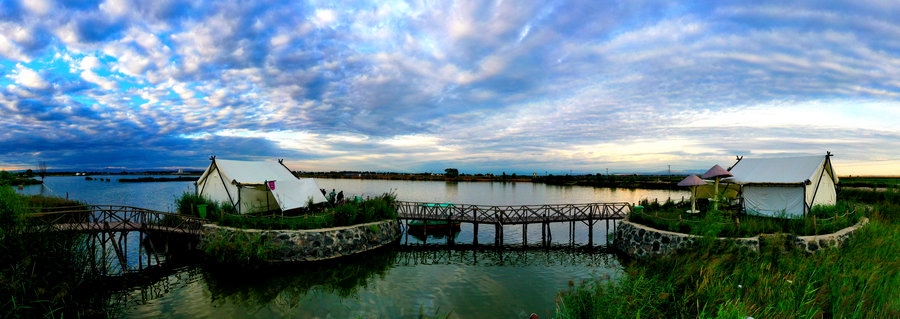 夜幕下的湖邊帳篷區(qū)  記者 張楊攝影