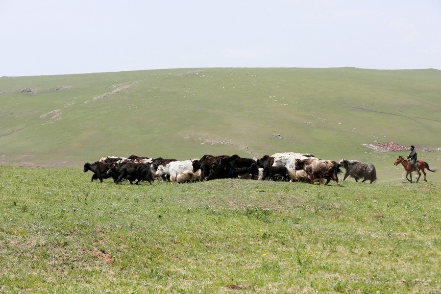 演員演出間隙在草原上拍照打卡 記者 張楊攝影