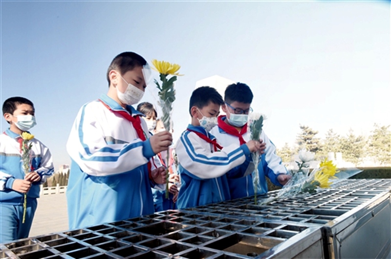 4月3日,在清明節(jié)到來(lái)之際,包頭市青山區(qū)一機(jī)三小的少先隊(duì)員自發(fā)來(lái)到井坪公園烈士紀(jì)念廣場(chǎng),向革命烈士敬獻(xiàn)鮮花,聆聽革命先烈的光輝事跡,弘揚(yáng)革命精神,傳承紅色基因,汲取前行力量,爭(zhēng)做新時(shí)代好少年。(記者 張富博)