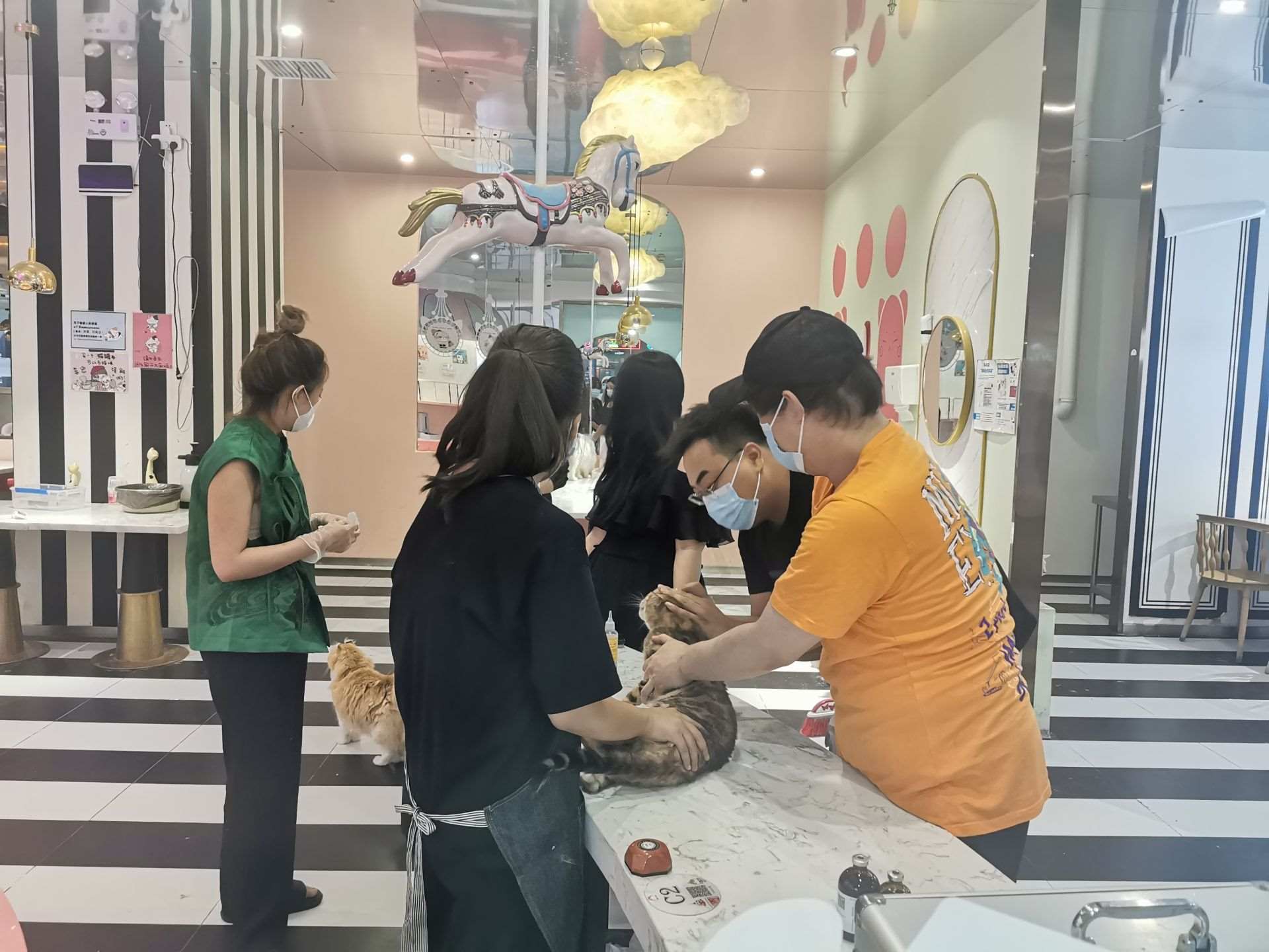 “志愿者團(tuán)隊(duì)連續(xù)幾天在做這個(gè)事情,團(tuán)隊(duì)里有寵物醫(yī)生,前幾天幫貓咪打針吃藥,還有志愿者與物業(yè)協(xié)調(diào)恢復(fù)供電,讓貓舍保持通風(fēng),目前貓咪存在耳螨、鼻支等小病,我們正在對(duì)其積極治療,專業(yè)愛(ài)心人士也源源不斷地向店內(nèi)郵寄寵物藥品,店內(nèi)物資充足,希望市民們不要送貓糧或者現(xiàn)場(chǎng)投喂,由于貓咪腸胃脆弱,貿(mào)然換糧會(huì)導(dǎo)致嘔吐、拉肚子?!币幻灾驹刚吒嬖V記者。店主目前在北京,正在積極協(xié)調(diào)解決此事,也通過(guò)志愿者,從北京向店內(nèi)寄送了一些難買到的貓咪必需藥品,志愿者們希望網(wǎng)友們不要對(duì)店主進(jìn)行網(wǎng)暴和人肉搜索,而是抱以積極心態(tài),推動(dòng)事件迅速解決。
