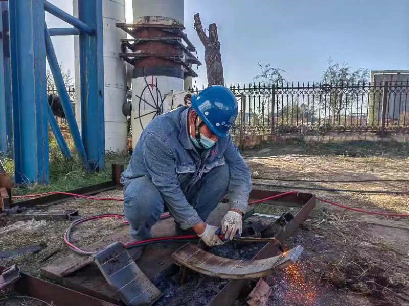 設備部檢修人員在檢查中發(fā)現(xiàn)供熱管道有三處堵板輕微變形,這會給今冬的安全穩(wěn)定供熱帶來極大隱患,必須馬上加固處理,對法蘭及螺栓進行全部焊接。焊接工作量很大,時間又緊,設備部馬上抽調4名焊工組成“焊接小分隊”加班加點展開搶修。氣溫已降到個位數(shù),寒風中點點焊光閃耀,他們只想趕緊保質保量的完成任務,顧不上寒風刺骨。設備黨支部書記安正平帶領支委和黨員成立了黨員突擊隊及時支援,解決了熱網(wǎng)檢修現(xiàn)場人員和技術力量不足的困境。