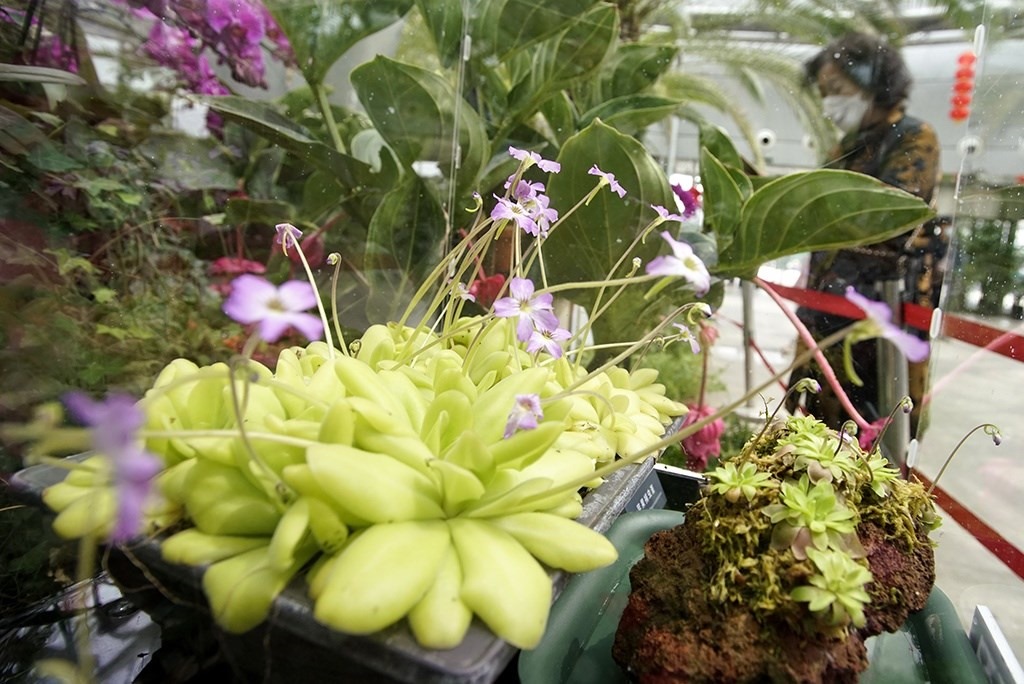 這是4月27日在國家植物園溫室內拍攝的馬爾恰諾捕蟲堇。新華社記者 李欣 攝