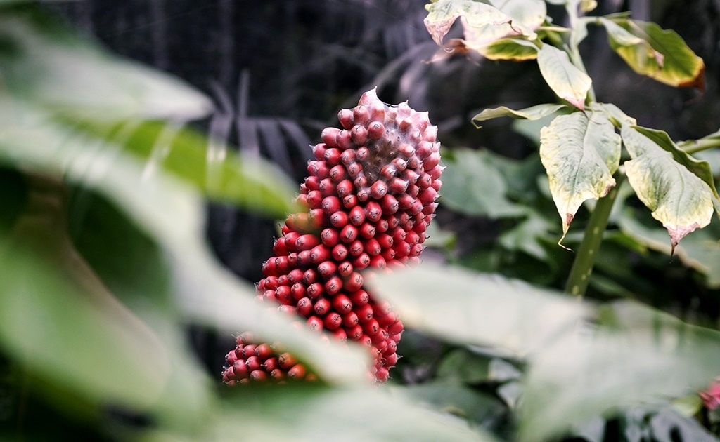 這是4月27日在國家植物園溫室內拍攝的巨魔芋。新華社記者 李欣 攝