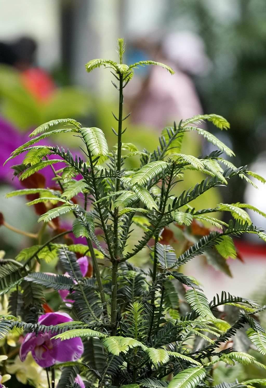 這是4月27日在國家植物園溫室內拍攝的蓖子三尖杉。新華社記者 李欣 攝