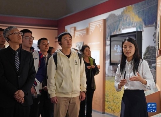 4月28日,在上海市檔案館的展廳內(nèi),編研部工作人員戴舒(右一)為參觀者講解。檔案館的青年組成“上海市檔案館青年檔案文化志愿宣講團(tuán)隊(duì)”,常年擔(dān)任館內(nèi)展覽的志愿講解員。