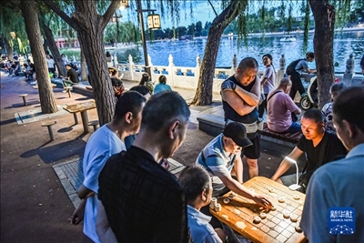 2023年6月10日,市民在北京什剎海邊下棋。新華社記者 陳鐘昊 攝