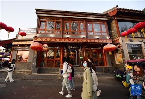 這是2023年3月12日拍攝的北京什剎海:“鴉兒李記”飯店。新華社記者 張晨霖 攝