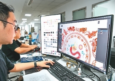 多彩貴州文化數(shù)據(jù)平臺(tái)有限公司的設(shè)計(jì)師在電腦上做苗繡矢量化提取。