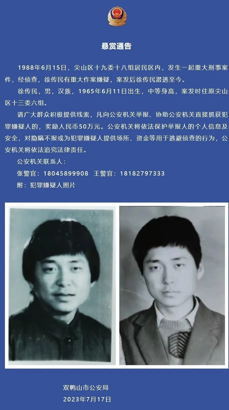 ·黑龍江警方懸賞50萬抓捕35年前刑案嫌疑人:涉嫌殺害前妻及其父母,案發(fā)現(xiàn)場僅一歲孩子活著。