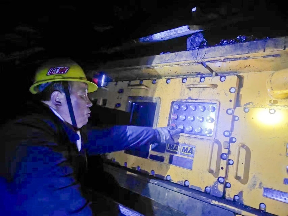 工人師善坤在操作采煤設(shè)備。新華社記者王怡靜 攝