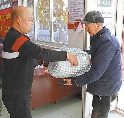 上午10時(shí),走進(jìn)碼頭村黨群服務(wù)中心,正碰上73歲老人杜金亭騎著電動(dòng)三輪車,載著老伴來(lái)領(lǐng)新棉被。為保障困難群眾冬季取暖,涿州市民政局為全市殘疾人、“六類人群”免費(fèi)發(fā)放過(guò)冬棉被。杜金亭的老伴肢體殘疾,是低保戶?!靶路颗渖闲旅薇?,這個(gè)冬天不愁了!”取上新棉被,杜金亭邀請(qǐng)記者去新家看一看。
